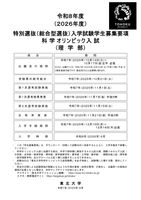 東北大学 令和8年度(2026年度)特別選抜(総合型選抜)入学試験学生募集要項 科学オリンピック入試(理学部)